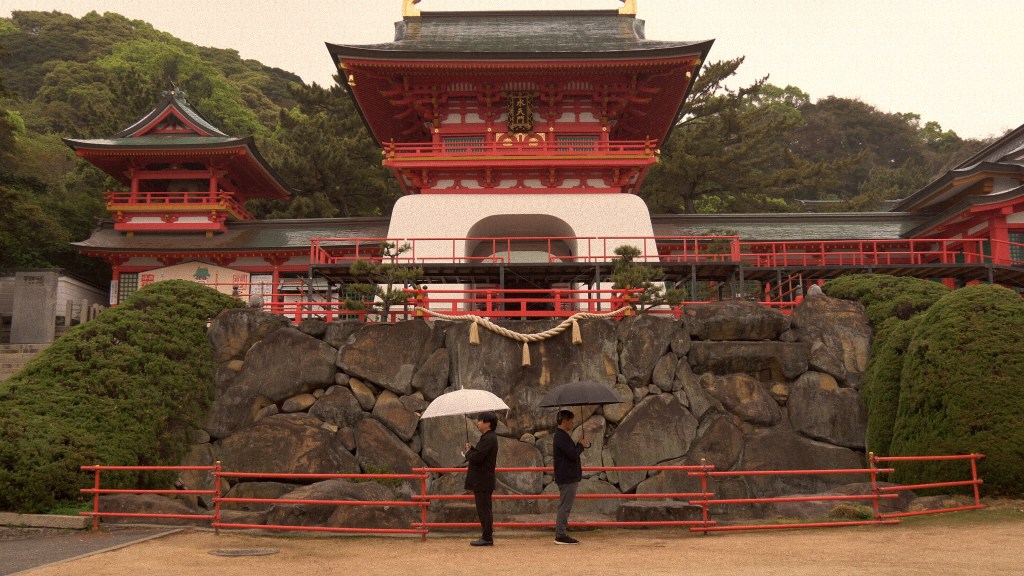 「KANMON11」は、環境問題の温暖化をテーマに山口県下関市にある赤間神宮の先帝祭ステージ下で雨の中で2人の静止したようにみえるパフォーマンス。